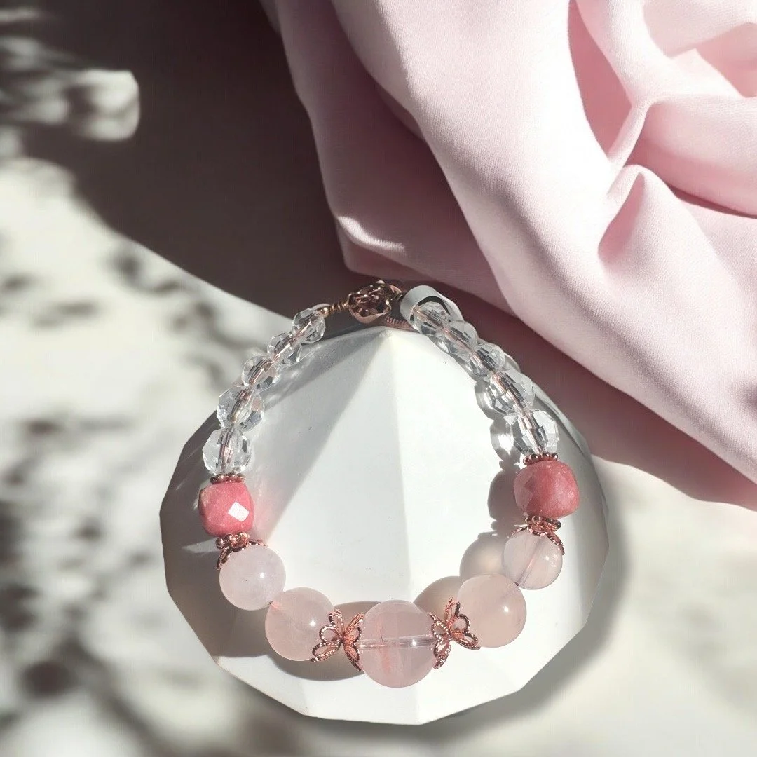 A Sakura-inspired bracelet captures the delicate beauty of cherry blossoms, symbolizing spring and renewal. With soft pastel colors like pink, white, and light purple, along with crystals like rose quartz and rhodonite, these bracelets evoke the elegance of sakura petals. Perfect for embracing the season of renewal and beauty.