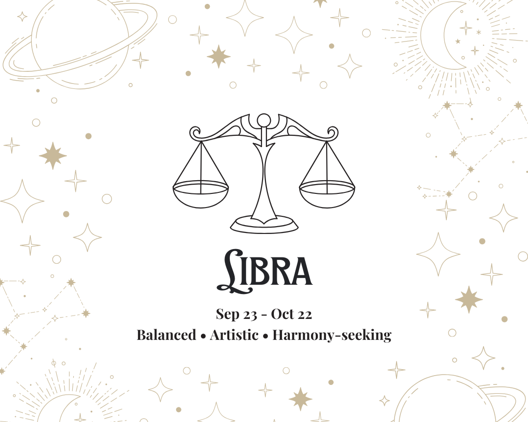 Libra is graceful, fair-minded and drawn to harmony. You value balance in relationships and surroundings, and you often act as the peacemaker. With your natural charm and sense of aesthetics, you bring beauty and calm into spaces. However, you may struggle with indecision or emotional overwhelm when things feel out of balance.